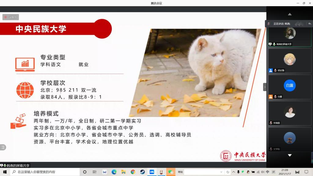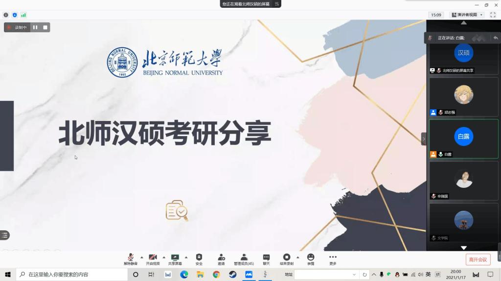 1月17晚,DB旗舰举办线上考研经验分享交流会,由DB旗舰学习生活作风建设中心承办。由15级优秀毕业生——北京师范大学邢晓玲和16级优秀毕业生——中央民族大学韩燕担任主讲人。