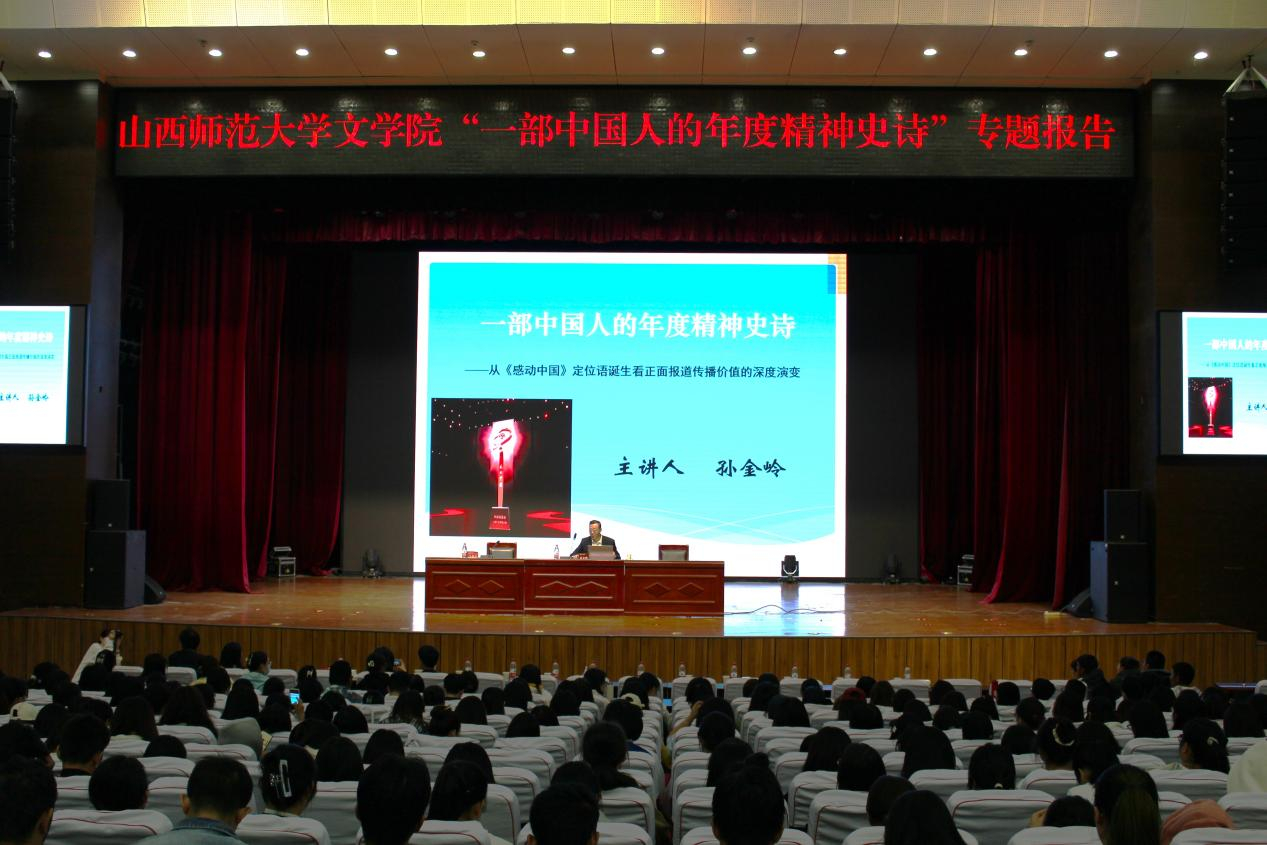 报告会上,孙金岭对比其他央视栏目标题语的产生和发展,向同学们介绍了《感动中国》栏目标题语从不断摸索、逐渐积累到最终完善的过程。接着孙金岭从《感动中国》精神内涵出发,阐释感动的含义,凝聚感动的力量。他指出《感动中国》栏目丰富内涵的形式,是当选人物那道德之光、人性之美的必然呈现,节目用全国的感动凝聚所有的力量,唱响了一曲具有非凡感召力和震撼力的主旋律。