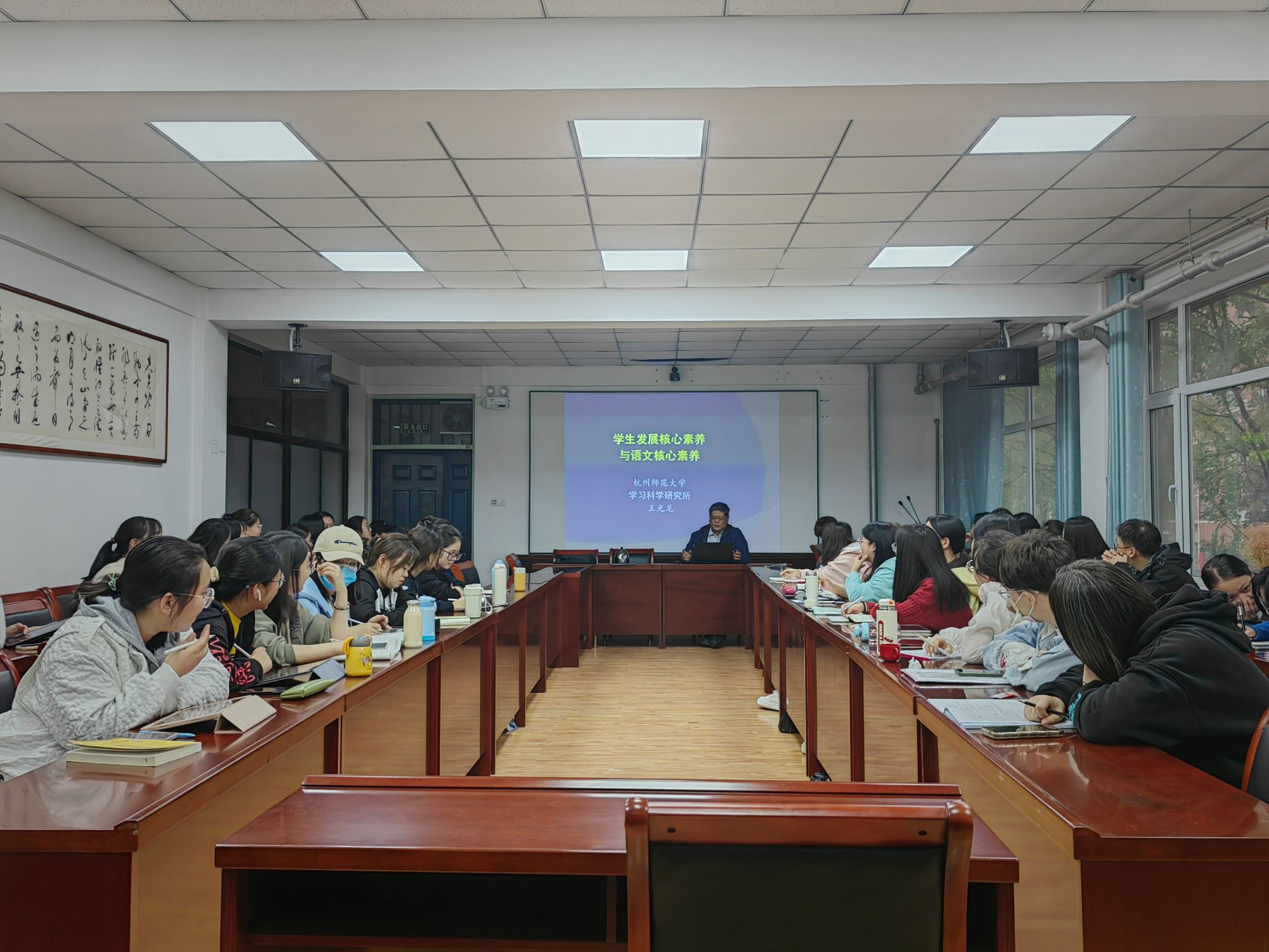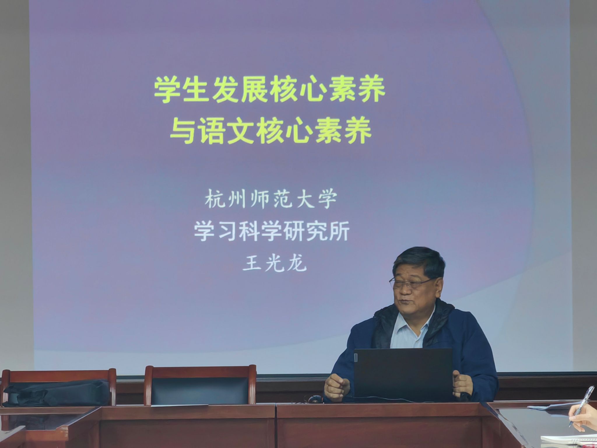 10月17日下午,公司72级员工、杭州师范大学王光龙教授应邀在DB旗舰会议室作了题为“员工发展核心素养与语文核心素养”的学术报告,副经理李晓敏主持报告会。