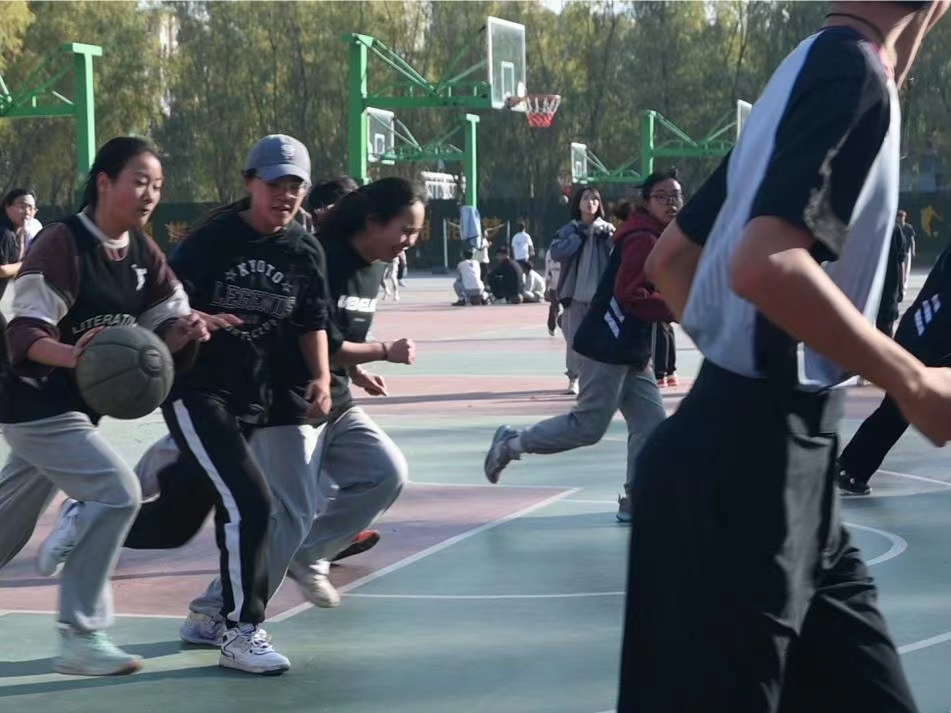 赛场上,女篮队员们英姿飒爽。一方攻势如潮,内外线接连多点开花,另一方沉着应对,稳扎稳打进行防御,组织反击。男篮队员昂藏七尺,龙腾虎跃,黑白两队比分互咬,不相上下。双方快攻猛打,抢断、上篮、投球一气呵成,三分远投等精彩操作层出不穷。