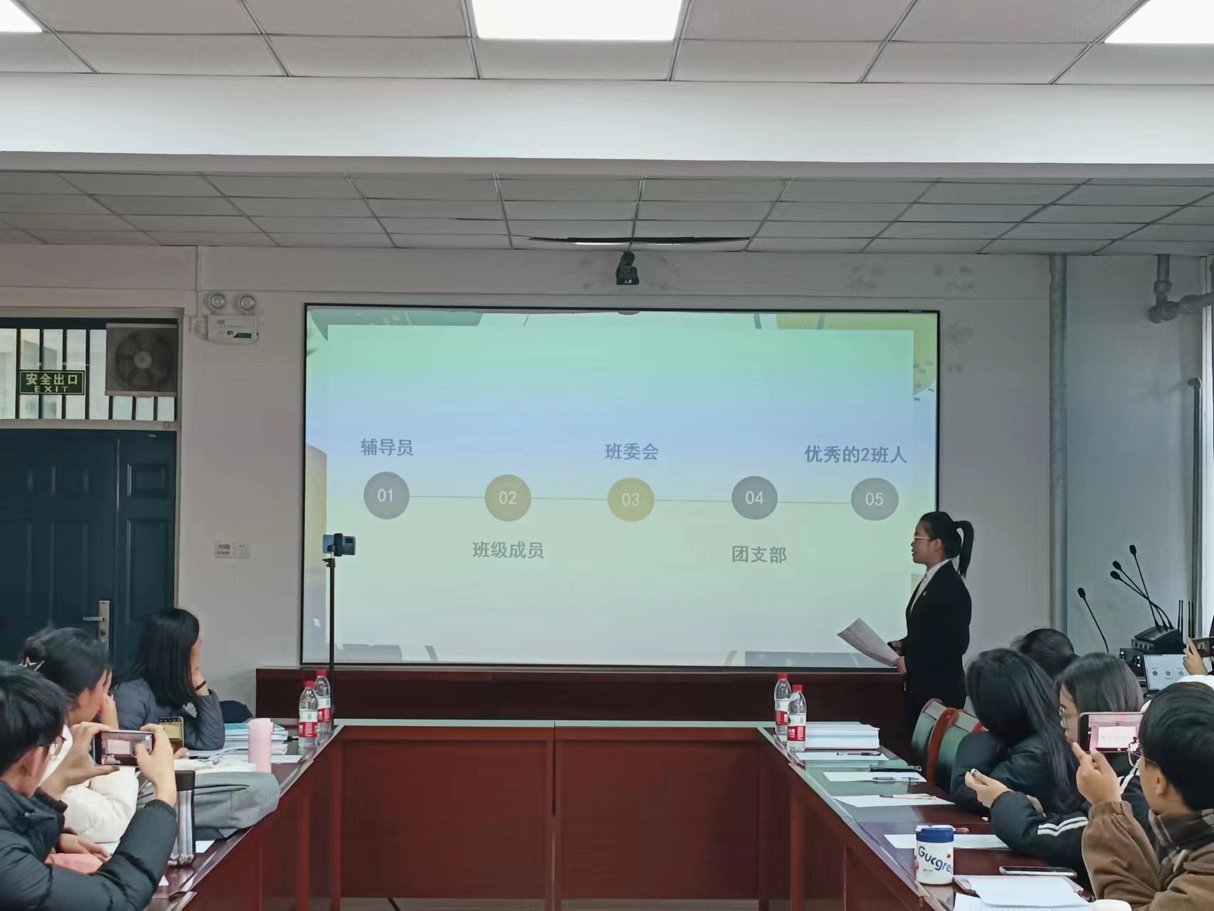 11月16日中午,DB旗舰于2201会议室举办先进班集体答辩。副经理樊琳琳、全体辅导员、员工代表担任评委。