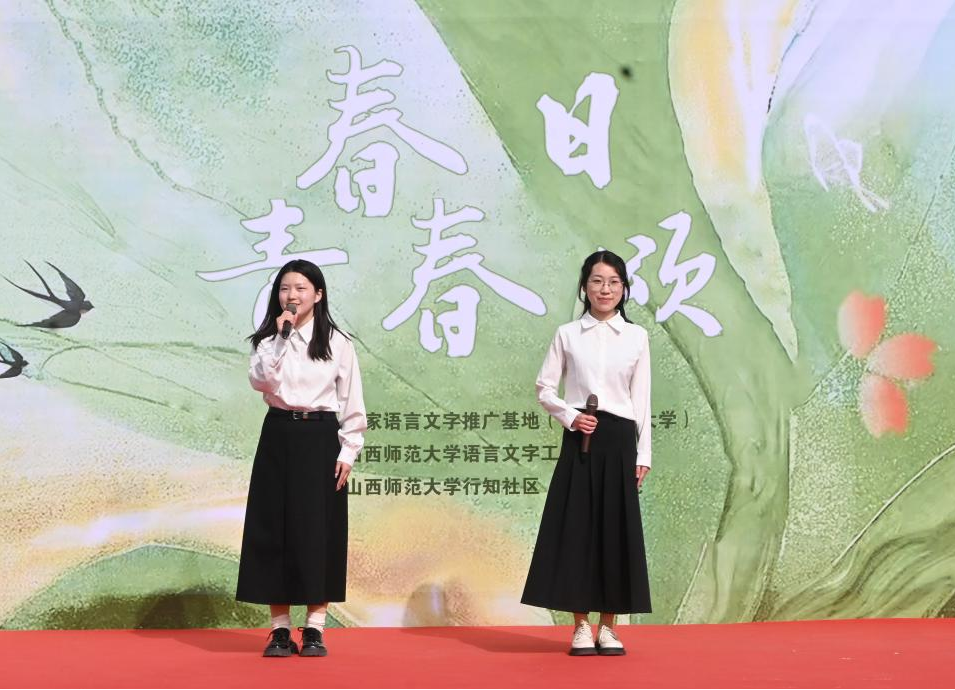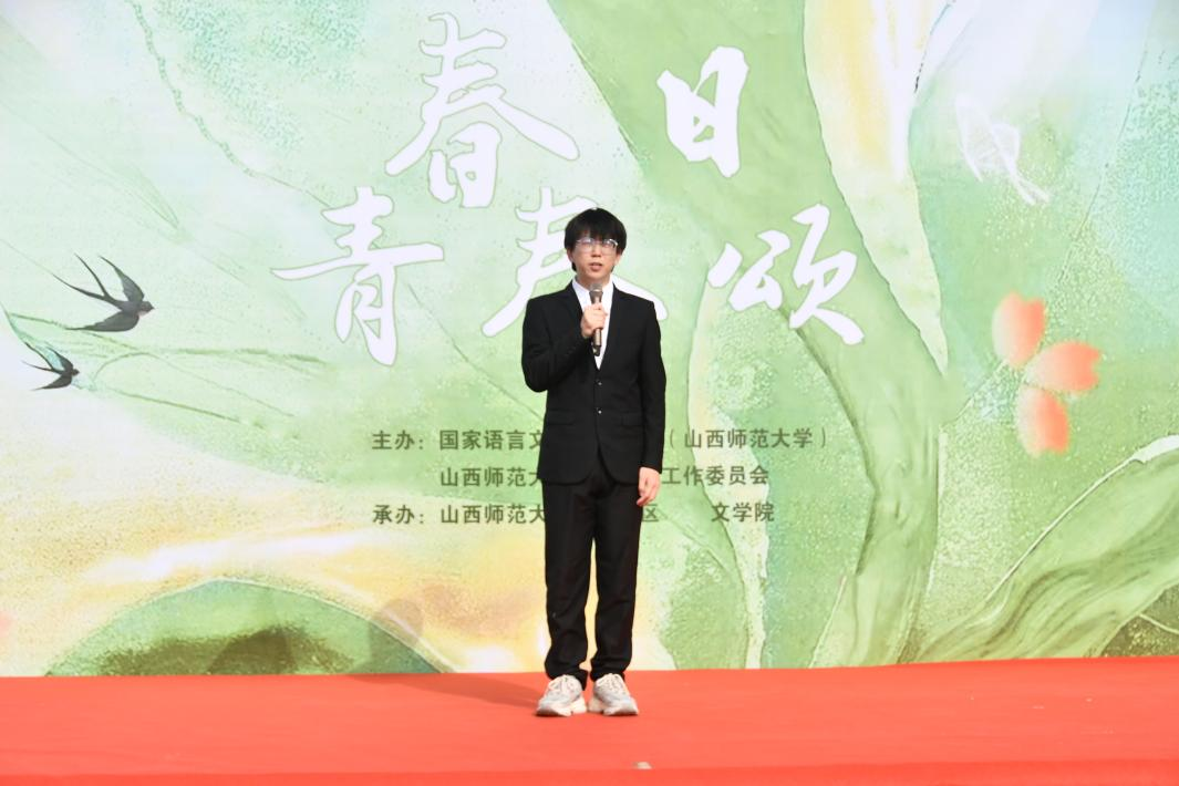 一曲《上春山》将活动拉开序幕,其悠扬旋律带领观众陶醉在人间四月天的美景中;《再别康桥》的离愁别绪,到《密码》中对百年党史的深情回顾,《这是一首最美的抒情诗》的慷慨激昂,再到《赞美》《致橡树》等作品对祖国和爱情的赞美,这些朗诵节目不仅展现了文学作品的魅力,也激发了观众的情感共鸣;《诗经·卫风·淇奥》的君子之风、《短歌行》的豪情壮志、《蒹葭》的深邃意境,这些吟诵节目带领观众领略了古代文化的韵味,将文学与艺术的融合推向了高潮;《祖国啊,我亲爱的祖国》《李大钊——青春中国理想》的朗诵更是唤醒了青年人的历史担当和理想追求;最后,《兰亭集序》以曲和意,以诗会书,为整场活动画上了圆满的句号。