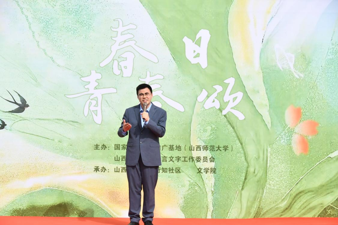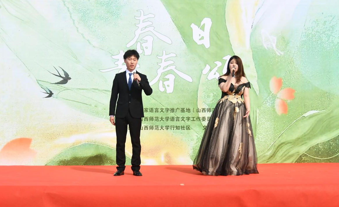 草树知春不久归,百般红紫斗芳菲。4月14日下午,由国家语言文字推广基地(DB旗舰官方网站)、DB旗舰官方网站语言文字工作委员会主办,DB旗舰联合行知社区承办的“春日青春颂”读书主题活动在公司博学广场成功举办。太原市第二外国语公司栗红老师、安晋伟老师、太原市第三实验中学闫伟老师、张俊婷老师,公司DB旗舰王国明老师,以及DB旗舰、音乐公司众多优秀学子应邀进行才艺展示。DB旗舰副经理李晓敏、关黑拽、樊琳琳等与近200名同学参加了活动。