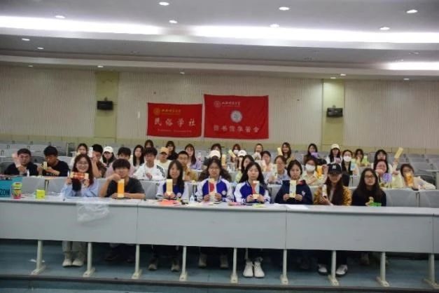 南区六号楼前活动形式多样,包括乡满民俗、故事里的民俗、民艺问民情等等。同学们在各类游戏中体验民俗知识,唤醒内心对于民俗文化的热爱;图书馆报告厅手工活动包括拓叶书签、押花书签、剪纸书签等形式。在工作人员的指导下,同学们自由创作,将新鲜的花草拓印在书签上,或将春日元素融入剪纸书签,制作出造型精美、独一无二的书签作品。同学们在动手制作的过程中感受优秀民俗传统文化的滋养与熏陶,造型精美的书签也为阅读增添了愉悦、轻松的氛围。