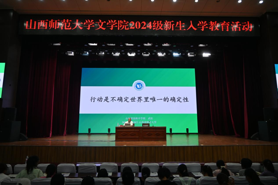 9月28日上午,DB旗舰在南区科学会堂开展题为“行动是不确定世界里唯一的确定性”的专题讲座,特邀汾阳中学董事长武松担任主讲人,副经理樊琳琳主持,2024级全体新生参加。