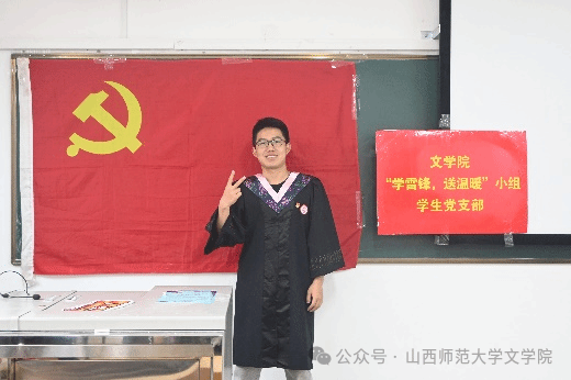活动还特别设置了“一张照片”活动,毕业生党员们身着学士服,胸前佩戴党员徽章,在党旗下进行拍照。学士服象征着学业的圆满完成,党徽则代表着党员的崇高身份与使命担当。毕业生党员们以这样独特的方式,为自己的校园时光画上句号,更立下了在新的征程中继续发挥党员先锋模范作用的铮铮誓言。这一环节不仅是形象的展示,更是精神的传承,激励着毕业生党员们无论身在何处,都铭记党员身份,勇担时代使命。