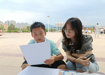 “益启说”推普志愿者教孩子诗文朗诵技巧 “益启说”推普志愿者进行汉字拼音教学